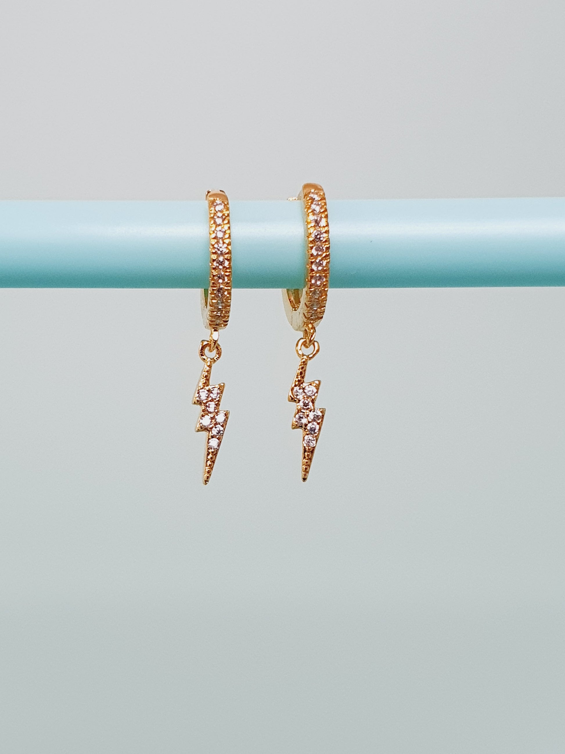 Gold vermeil lighting bolt huggie earring with diamanté detail